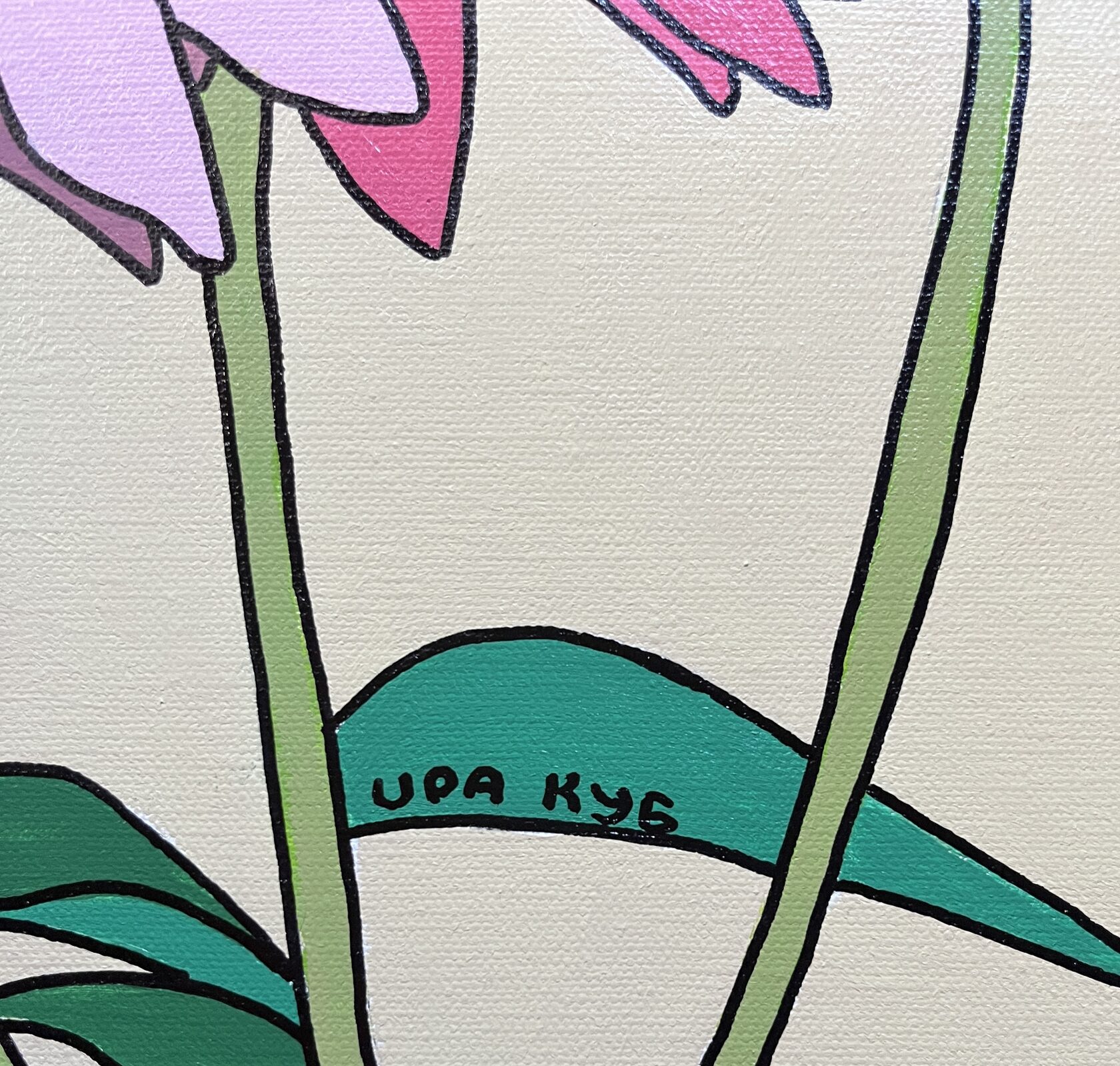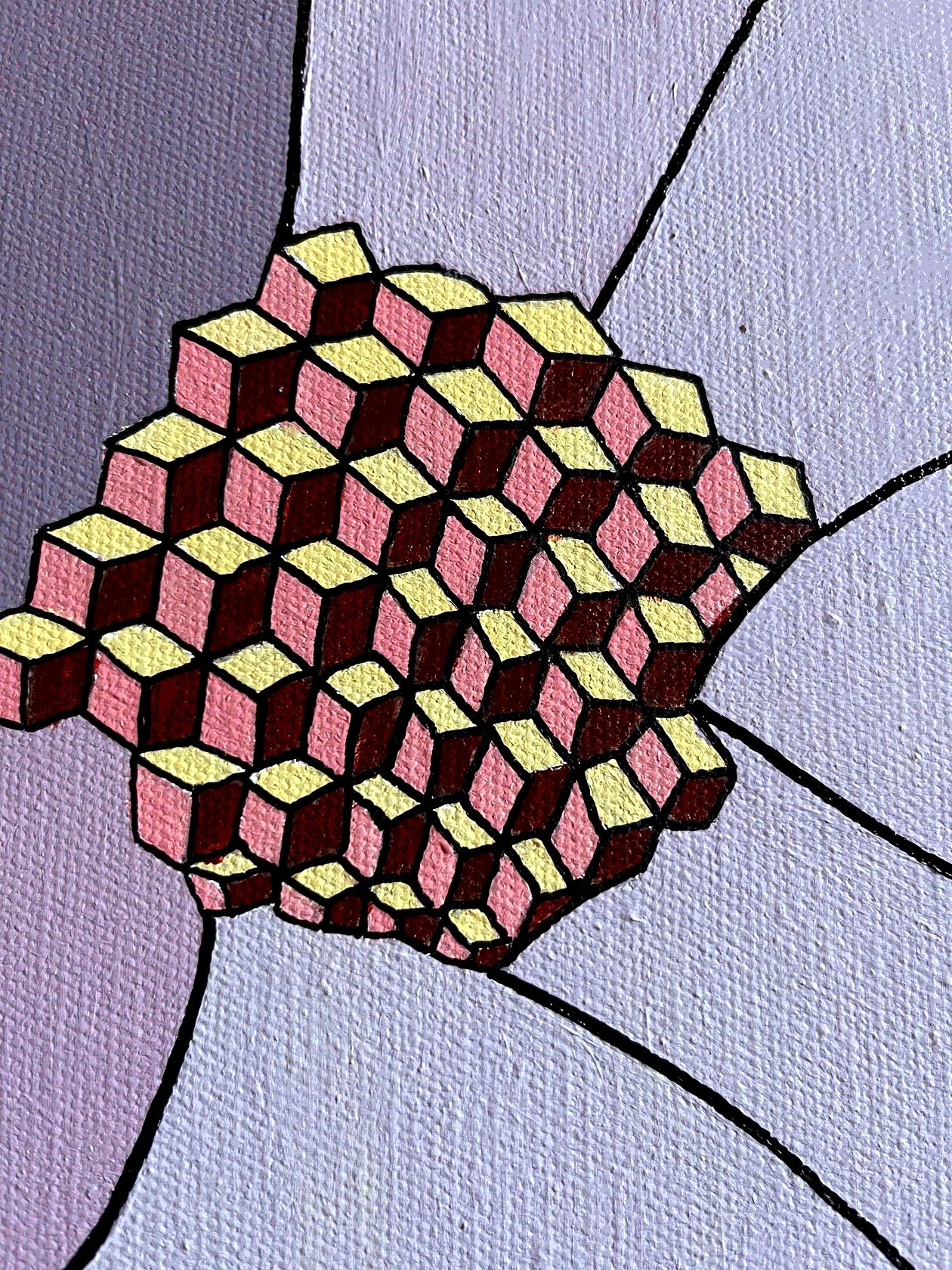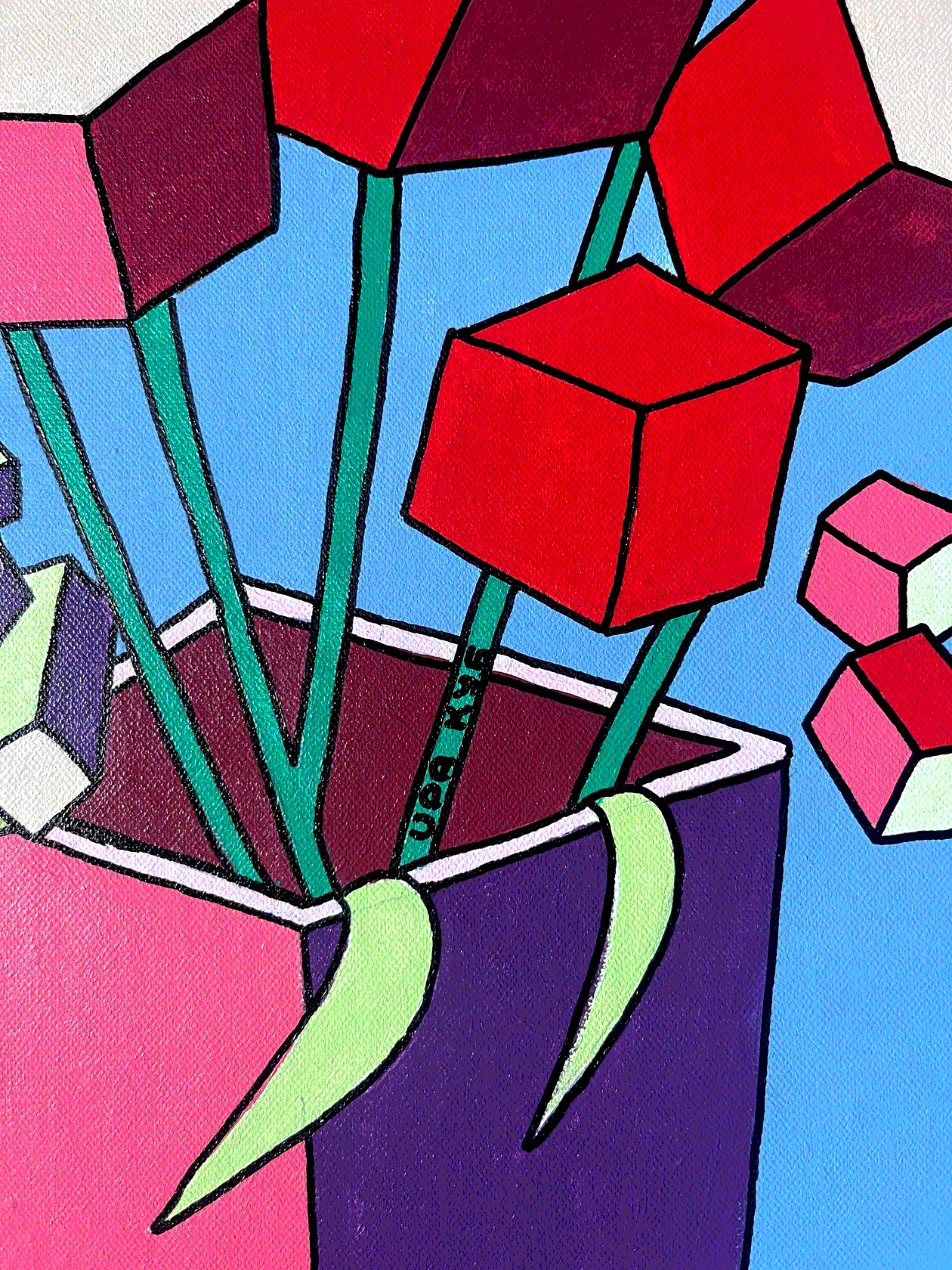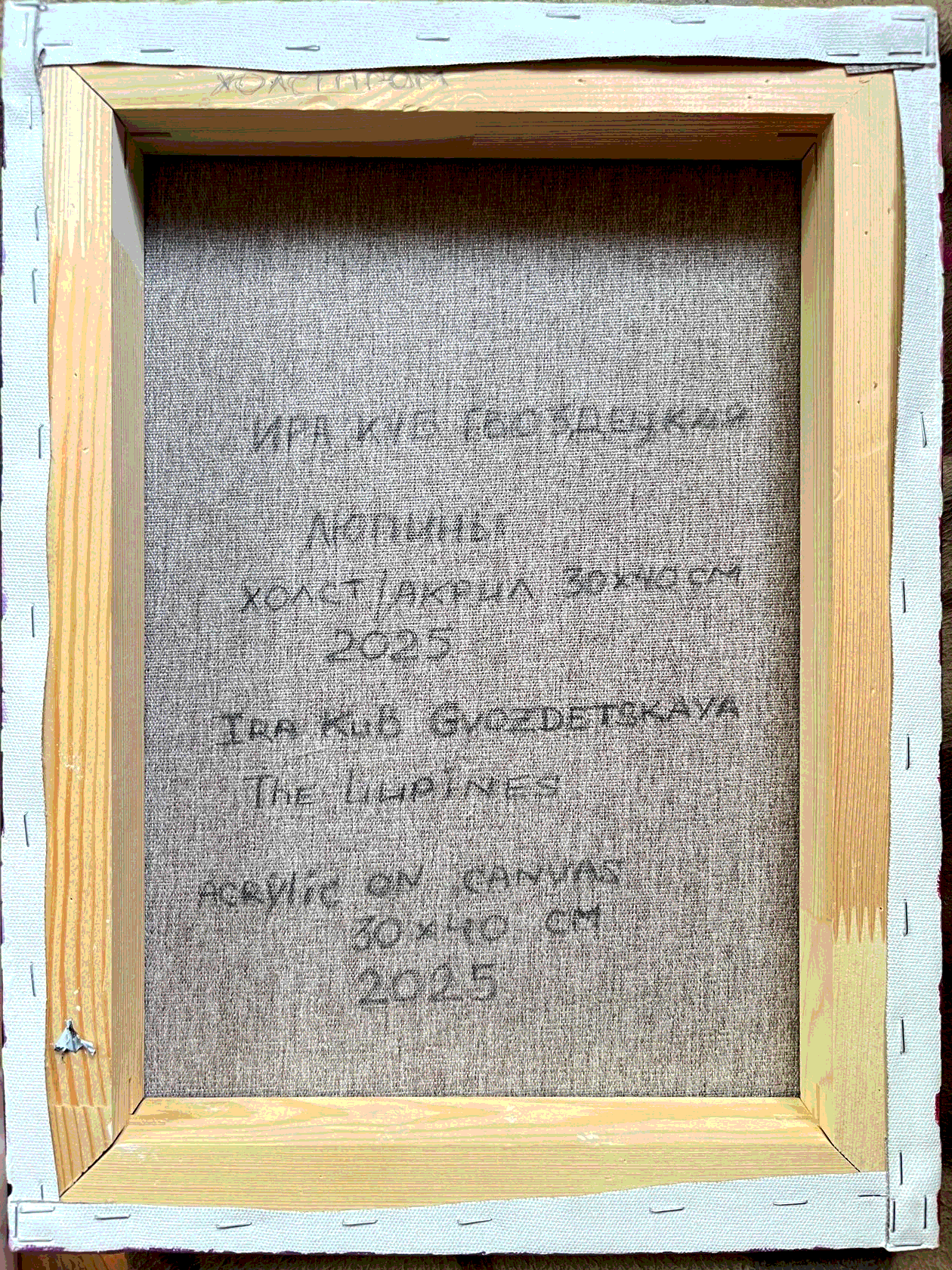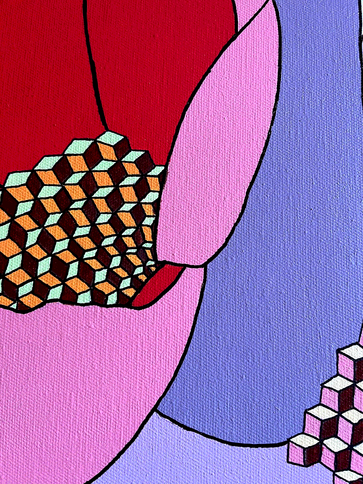 На картине в характерной стилистике поп-арта в нежной розово-лиловой гамме изображены соцветия люпина в виде каскада кубиков. Торцы оформлены автором вручную, оформление в багет не требуется.